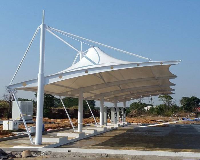 張拉膜結(jié)構(gòu)車棚具有十分良好的承載性能,能以很小的厚度承受相當大的荷載。車棚的強度和剛度主要是利用了其幾何形狀的合理性,以材料直接受壓來代替彎曲內(nèi)力,從而充分發(fā)揮材料的潛力。因此車棚是一種強度高、剛度大、材料省的即經(jīng)濟又合理的結(jié)構(gòu)形式。張拉膜結(jié)構(gòu)停車棚已經(jīng)融入到了我們的生活中,外觀靚麗,實用性較高深得用戶者們的喜愛,多種優(yōu)點豐富便捷了我們的生活。